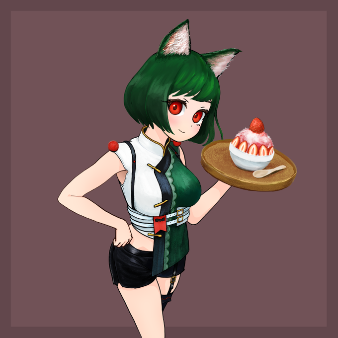 9 53 MYUさんのお話し会に参加した記念にファンアート。かき氷何が食べたいか聞いたら、苺ミルクとおっしゃっていたので、イチゴたっぷりのかき氷を描きました🍧 #VALIS_ART 22/08/08 00:53