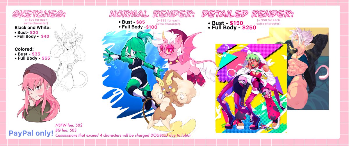 Howdy all! I decided to open up my commissions a little early cause I have family emergency. I have to help get my mom out of Colombia before the 10th. I have 4 slots open (no sketch slots at this time.) All comms are DEEPLY appreciate 🥹💕
