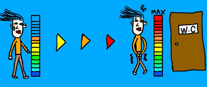 トイレまでの距離が短くなればなるほど、尿意の数値が大きくなる。 これを「尿意反比例」と言います。 #トイレ #イラスト