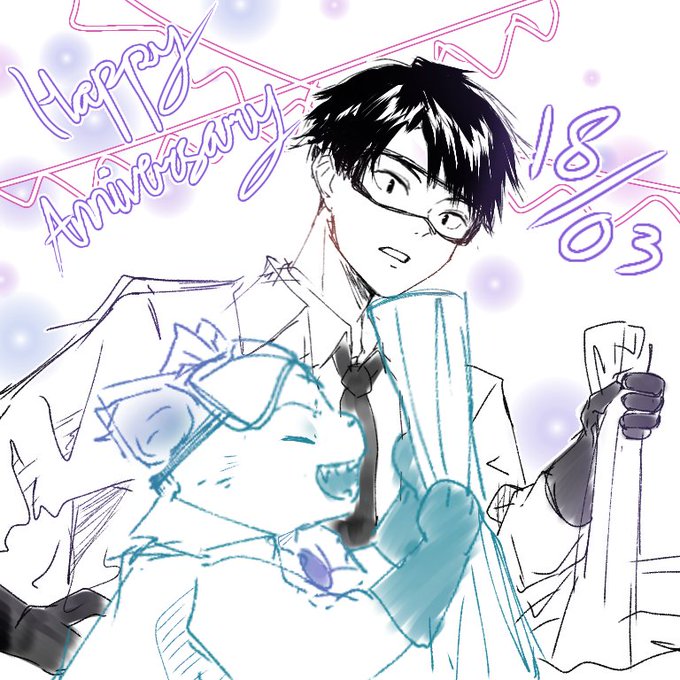 Happy Anniversary 🥳🎉 18/03 #ツイステファンアート #twstファンアート (sorry for late post) Grimm and Yuuken