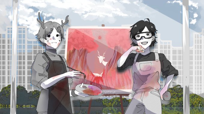 10 32 Happy Anniversary 🥳🎉 18/03 #ツイステファンアート #twstファンアート (sorry for late post) Grimm and Yuuken 22/03/20 18:55