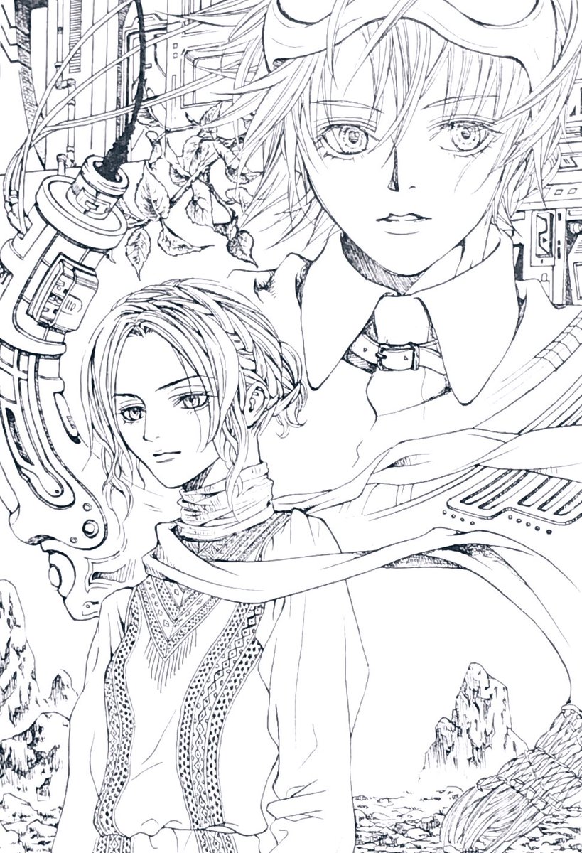 かなり若かりし頃の絵 メカメカしたものを描きたくなって、一応キャラ設定とかも考えてた(男の子がイオ、女の子がヒマリア) #創作 #イラスト #アナログイラスト #絵描きさんと繋がりたい #春の創作クラスタフォロー祭り #絵柄が好みって人にフォローされたい
