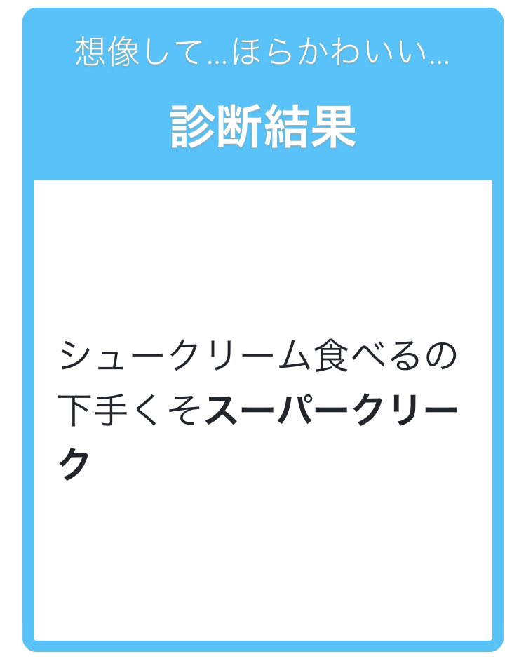 シュークリーム食べるの下手くそスーパークリーク #shindanmaker #horakawaii shindanmaker.com/769002 クリークで診断メーカーしてみたらかわeのが生成されました…😇