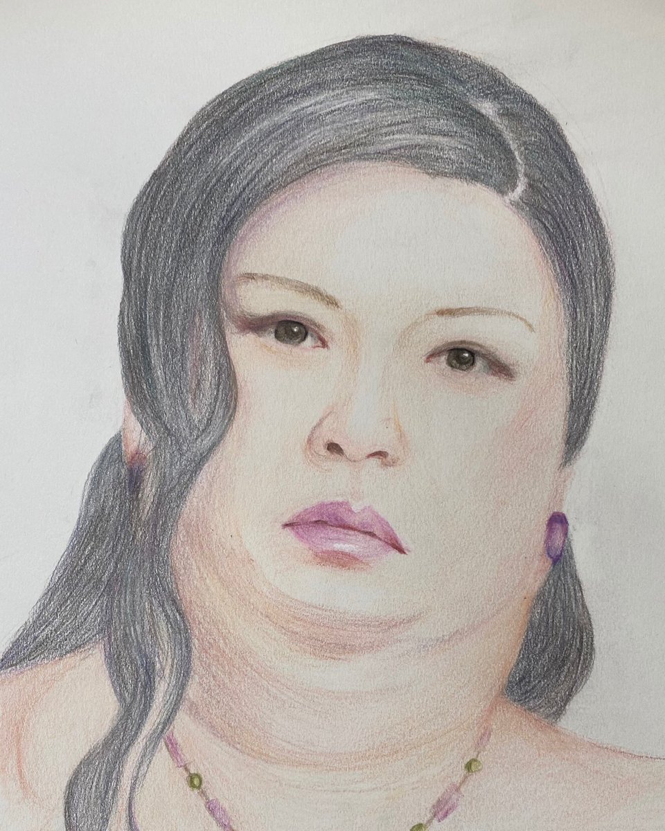 色鉛筆練習中。で、描いてみた 似てるかはどうかは微妙だけど、なかなか美人さんに仕上がった 笑 #マツコデラックス #色鉛筆画