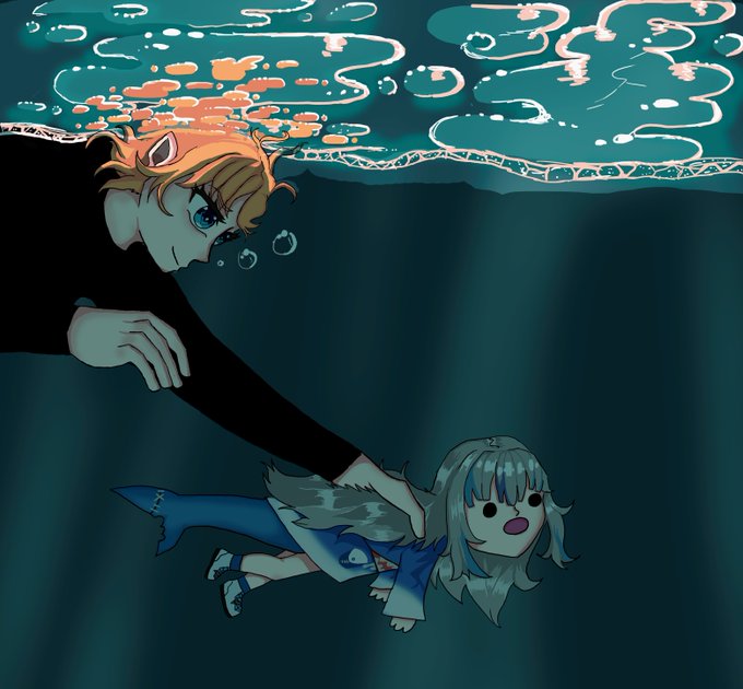 ame: * goes to the ocean* ame: * grabs gura * guwa: :0 #gawrgura #gawrt #ameliaRT