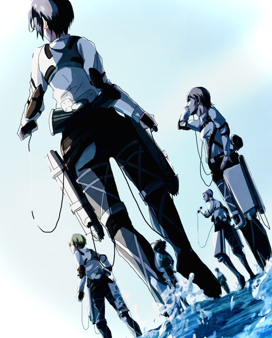 298 1840 手前からミカサ、ジャン、アルミン、コニー、ハンジ、リヴァイという構図の落描きです! なんとなくの遠近感が伝われば幸いです (><) 22/10/23 12:32