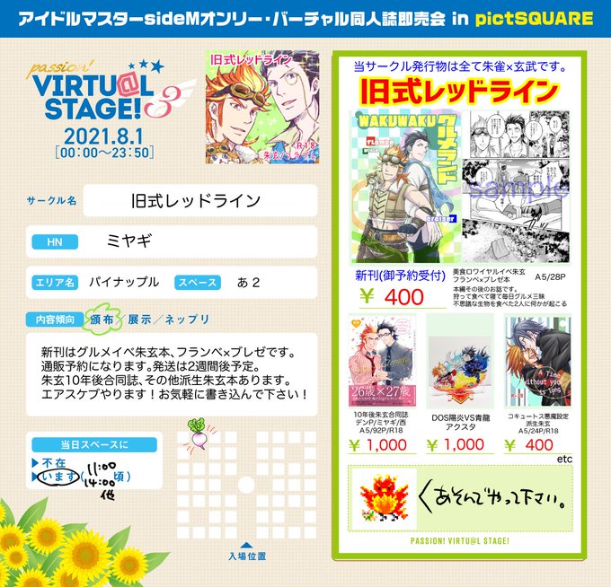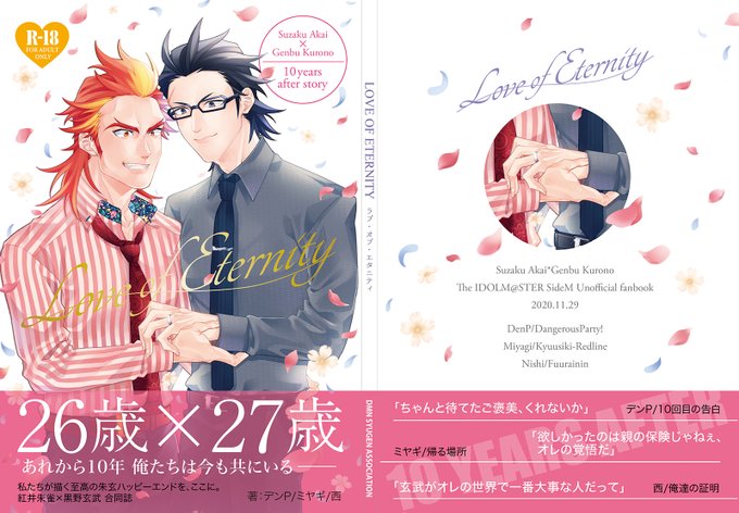 【朱玄】新刊合同誌サンプル【11/29ミラフェス22】 #pixiv pixiv.net/artworks/85793… デンP、ミヤギ、西の3人合同誌、10年後朱玄本のサンプルです。どうぞよろしくお願いします!