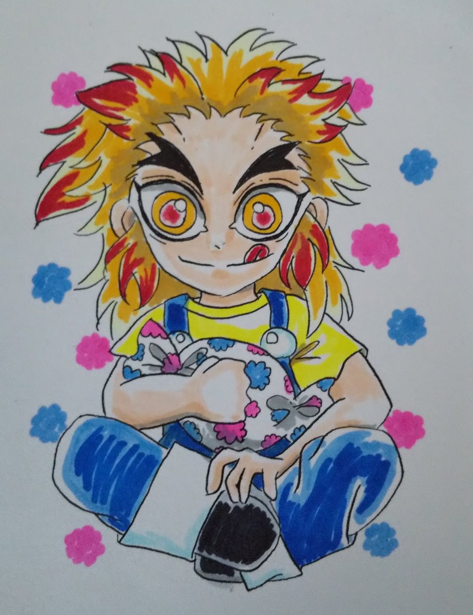 鬼滅の刃のミルキーコラボ🍬 キャンペーンプレゼント🎁で当たるぬいぐるみこんな感じに煉獄さん🔥のもあればたまらんかっただろうなぁ❤️❤️ ポコちゃんの衣装👖を着せてみた🧸 ミルキー缶は予約済み🎵 #鬼滅の刃イラスト #鬼滅の刃ファンアート