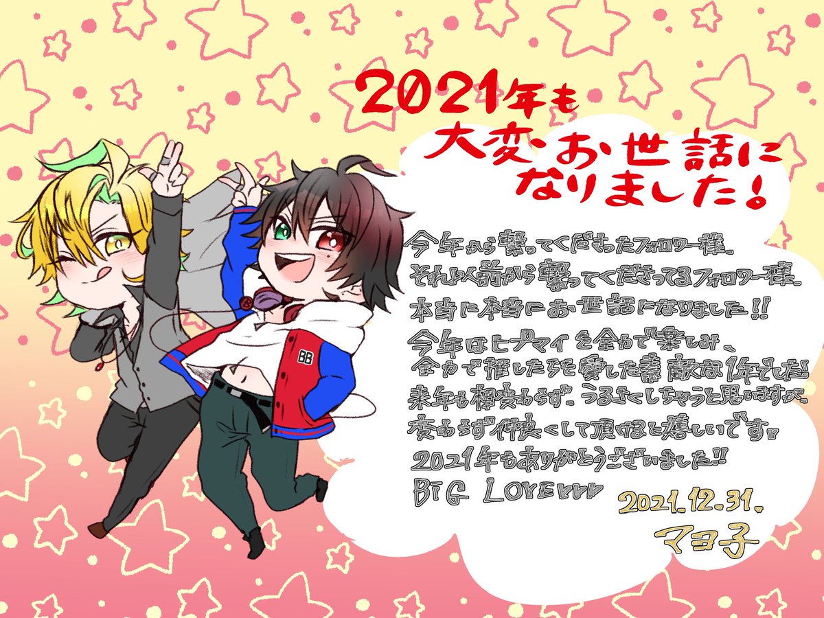 4 42 今年1年全力で応援した🎤の推しちゃんで描き納め!!✌️😉✨✨ みなさん、良いお年を!!!!!! 来年もバカ丸出しで いっきまーす! (((待ってww字がキモイwww))) 21/12/31 17:21