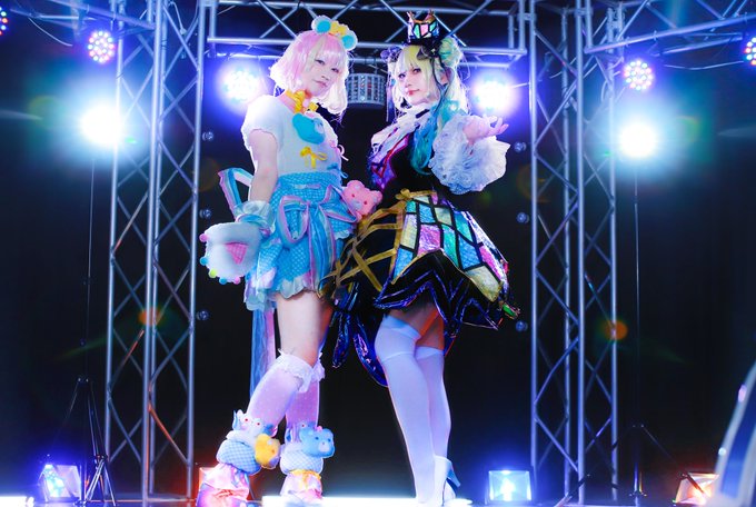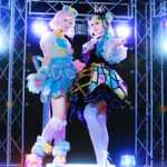#コスプレ あうるちゃんのテクノマジカルブルー全身❤️ 模様のカットデザインは、 まつりちゃんが全部つくってくれたよー スペシャルサンクス(@you_nagahoshi_z ) 生地は、エナメルいっぱい使って テカテカキラキラ!! #0311奇跡の降るステージ