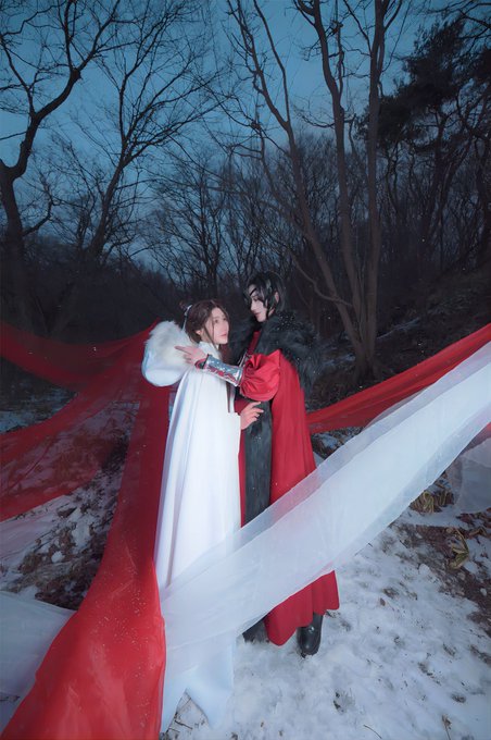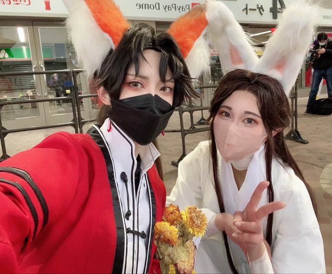 【コスプレ/ニ哈和他的白猫師尊】 わがまま言って双梅に囲まれて貰った💕🦊🦚🦊 梅寒雪@AC_747 梅含雪@MiloeyYao 📸@air_harano #2ha #ニ哈和他的白猫師尊 #双梅蒙 #2023_2haweek