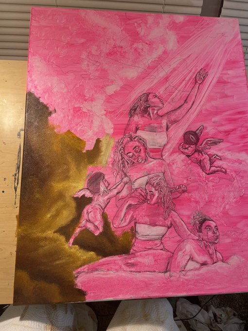 Not even an hour ago I was doubting myself as an artist sooo hard just to open my phone and find out my biggie painting has finally been sold. God has a funny way of keep ya head up huh? I’m so grateful