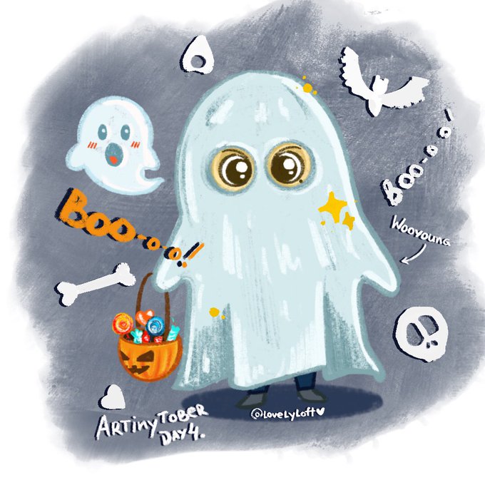 #Artinytober day 4 Wooyoung `s halloween costume - 👻 Ghost 🎃🍬🍭👻Trick or treat?🎃🍬🍭👻 #ATEEZ #ATEEZfanart @ATEEZofficial #WOOYOUNG #inktober2021 #Inktober