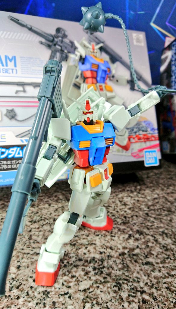 エントリーグレード のRX-78ガンダムフルウエポンセットのパチ組みヽ(・∀・)ノ ガンダムハンマーはやっぱりイイね(*´ω`*) もう少しブン回してる感を表現したかったな(;^ω^) #ガンプラ #ガンプラの画像貼るとRTされると聞いて #素組の人