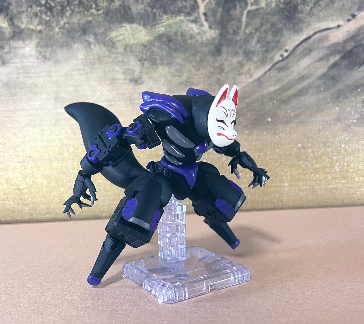 2か月かかって完成 九尾型DTA『魅雪』① 九尾の狐をモデルにした機体。 背部の尾状ユニットそれぞれが大容量バッテリーと独立したCPUになっており非常に高度かつ柔軟な思考能力を持つ。様々な取引や謀略を好む。 戦闘時には巨大な妖狐型アプリ『禍神狐児』を使役し戦う。 #デスクトップアーミー