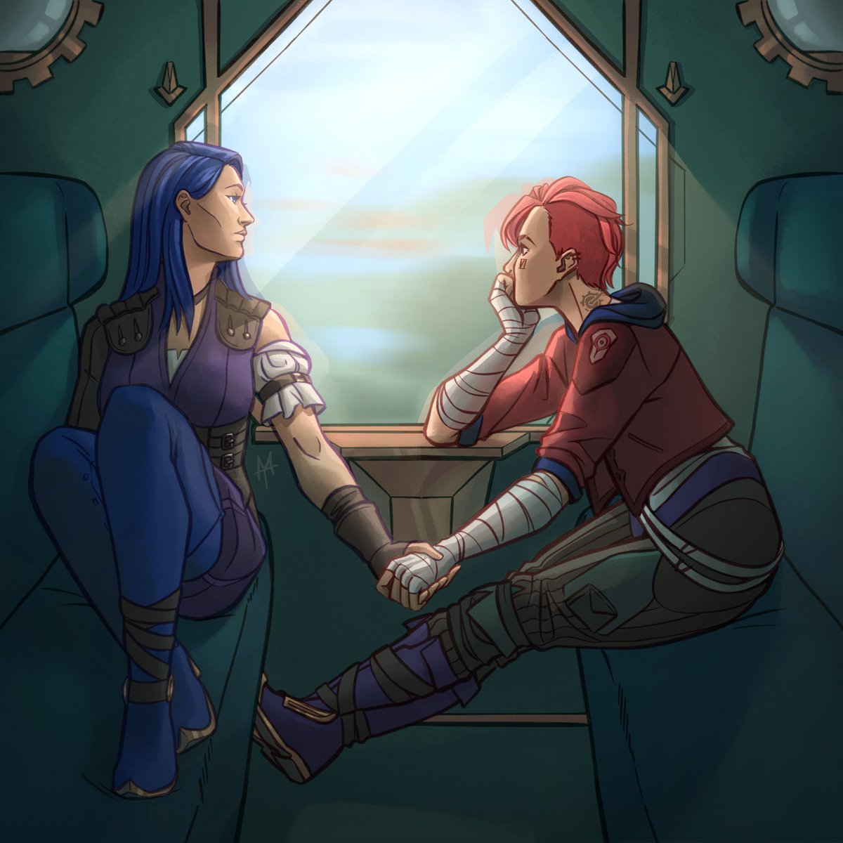 Their first train ride, but for probably very different reasons. Where are they headed tho?🚞#arcanefanart #violyn #piltoversfinest #caitvi