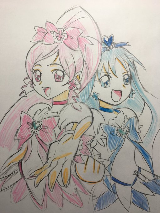 大好きなハートキャッチプリキュアのキュアブロッサム、キュアマリンを描きました!! #プリキュア版深夜の真剣お絵描き60分一本勝負 #プリキュアの日