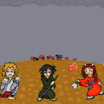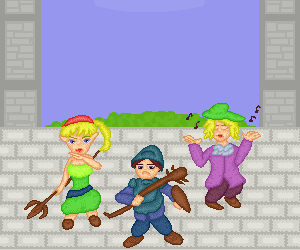 冒険者が現れた! 冒険者A「援護を頼む」 冒険者B「ふふ」 何やら笑っている 冒険者Cは歌い始めた。 #ドット絵