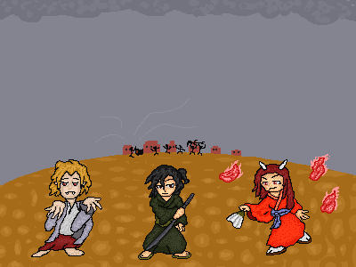 祭囃子に混じり悲鳴が聞こえる村があるようだ。 「成敗」「面白そう」「チェケラ」 #ドット絵