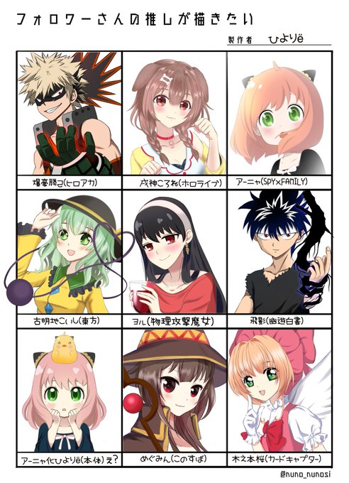 #フォロワーさんの推しが描きたい できた~😃 イメージと違うのあったらごめんなさい💦めっちゃ難しかったけど色んなキャラ描けて楽しかった~🤗 描けなかった方もリクエストありがとうございました(。ᵕᴗᵕ。) あとSPY×FAMILYみんな見よう😘