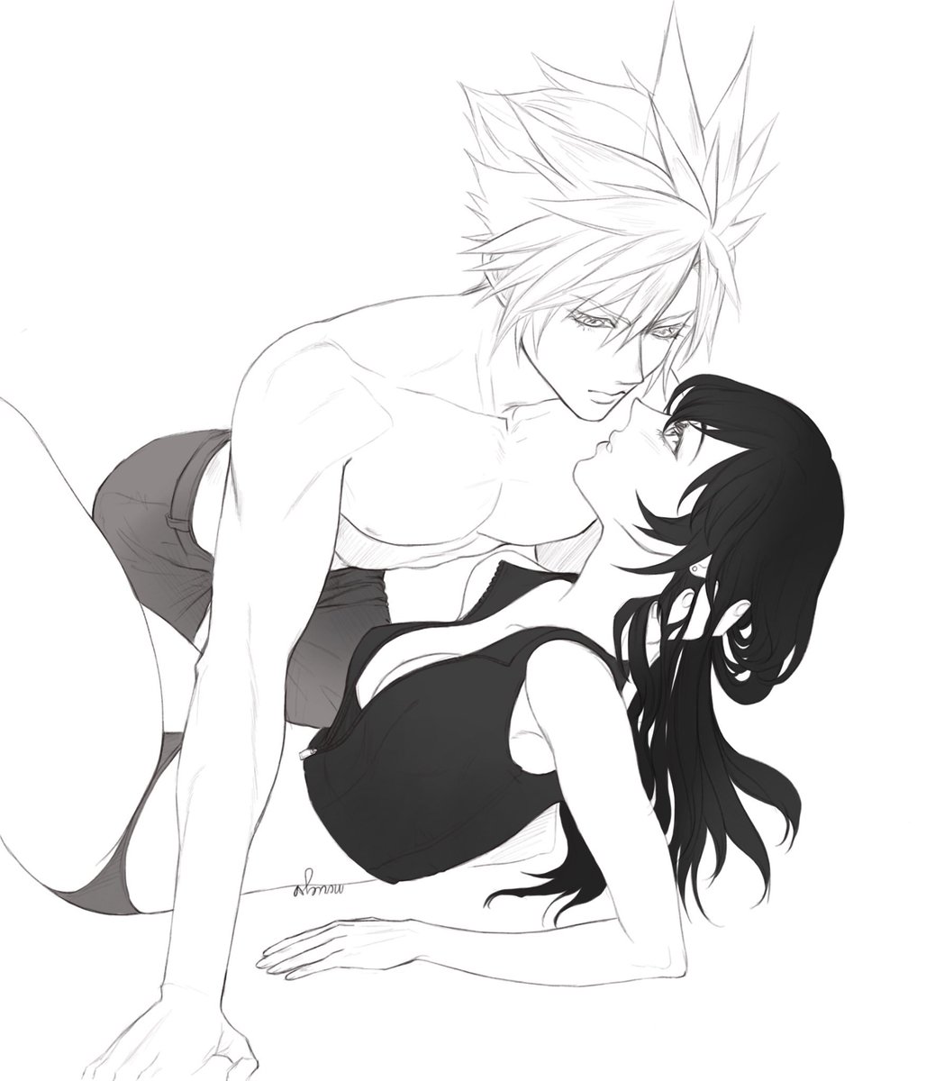 Sketching some. #FF7R #FinalFantasy #Cloti #Tifa #cloud