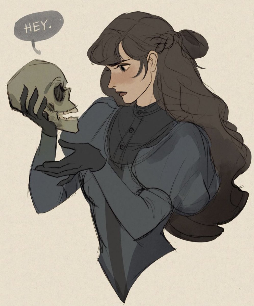 The title of my first original comic is Dame Drollery. It is about a librarian in the Victorian era who makes friends with skeletons of dead people who lived in the middle ages. I am currently working on it and plan to release it on webtoon this year. Please anticipate it 🙏🏽😗.