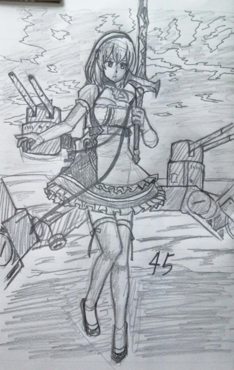 2 7 クロスウェーブシリアス 練習 そろそろペン入れ出来るかと思ったが 下描きシャーペンにしたら 10分オーバーした #イラスト練習 #アズレン 22/09/15 19:45