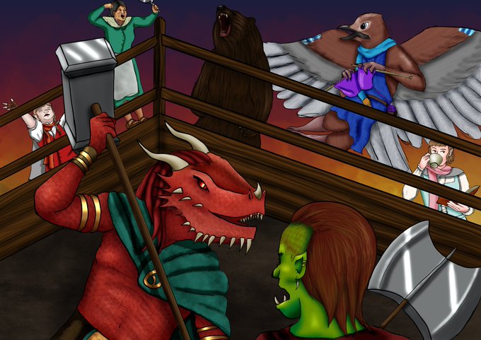 No stream this week as I'm on holiday, but here's one I finished earlier! An epic moment from the campaign I'm currently in! Thanks to @rosesewcostumes for being an amazing DM! #dndart #dndparty #fantasyart #ArtistOnTwitter #fight #art