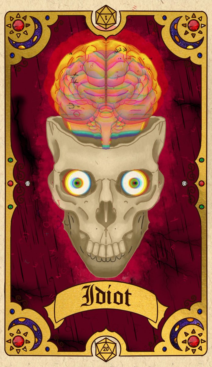 Deck of many things card 9. Idiot: Permanently reduce your Intelligence by 1d4 + 1 (to a minimum score of 1). #dnd #dnd5e #dndart #ttrpg #ttrpgfamily #digitalart #tarot