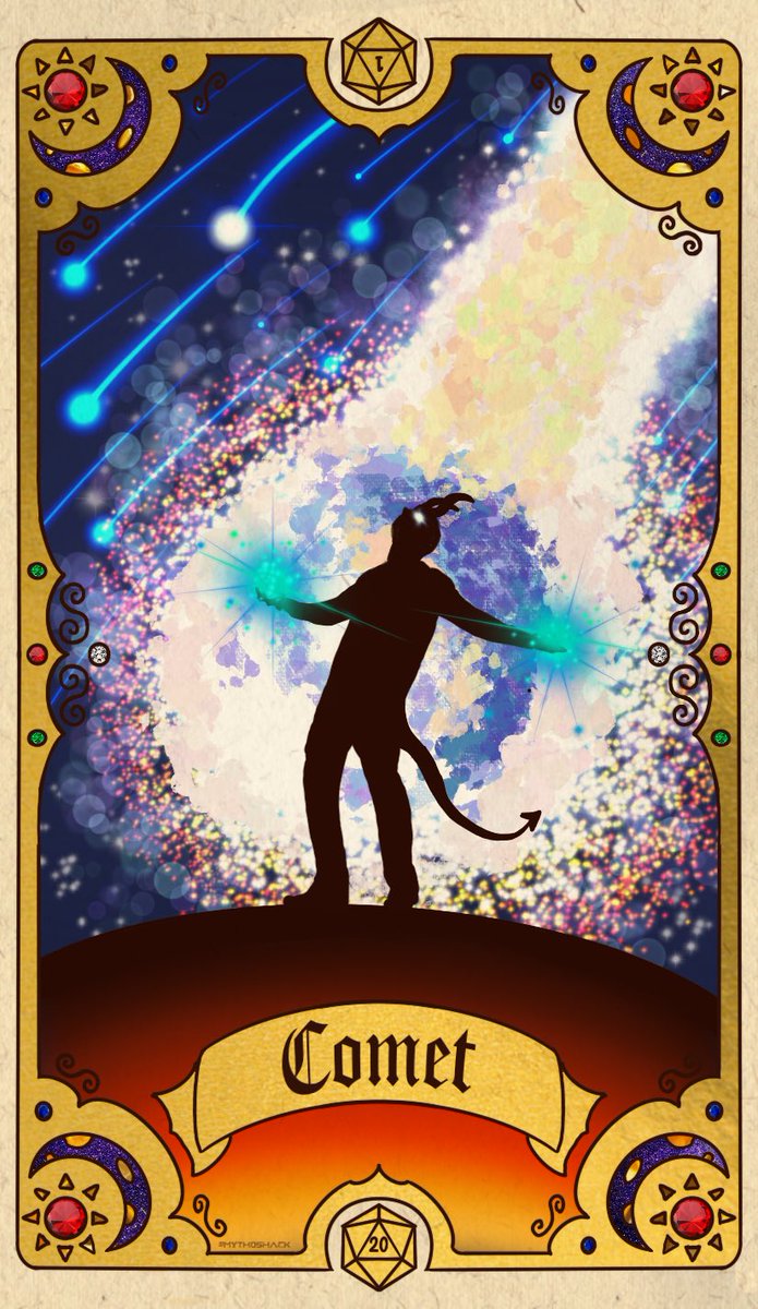 Deck of many things card 5 the comet. Follow along to see the full deck as it takes shape #dnd #dnd5e #ttrpg #ttrpgfamily #tarot #dndart #procreate #practice