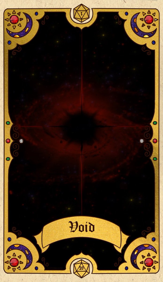 Deck of many things card 22, the final card in the deck, The Void: This black card Spells Disaster. Your soul is drawn from your body and contained in an object in a place of the DM's choice. One or more powerful beings guard the place. #dnd #dndart #fantasyart #Tarotcards #void