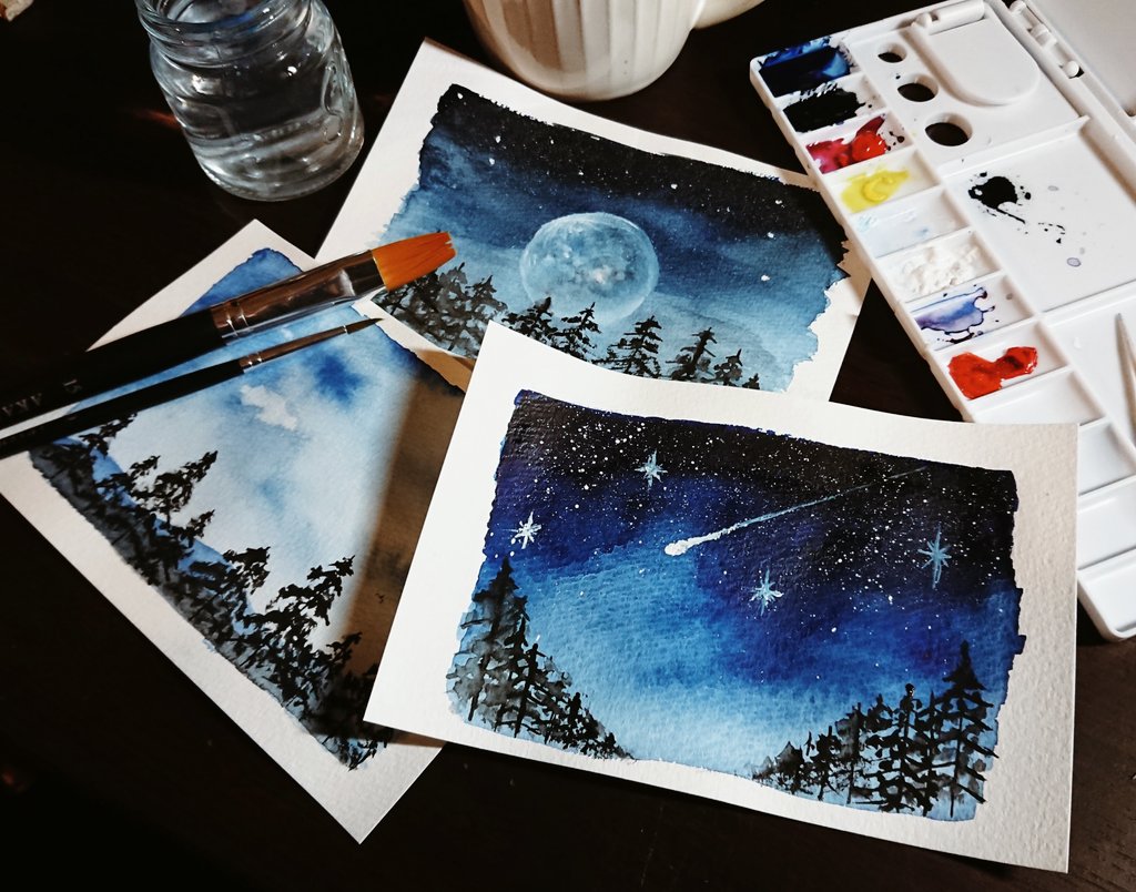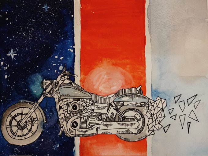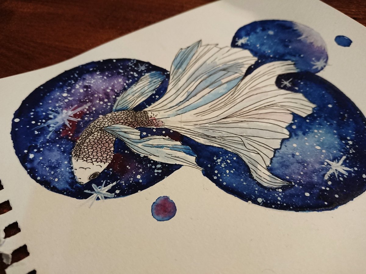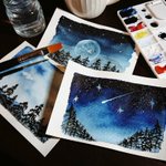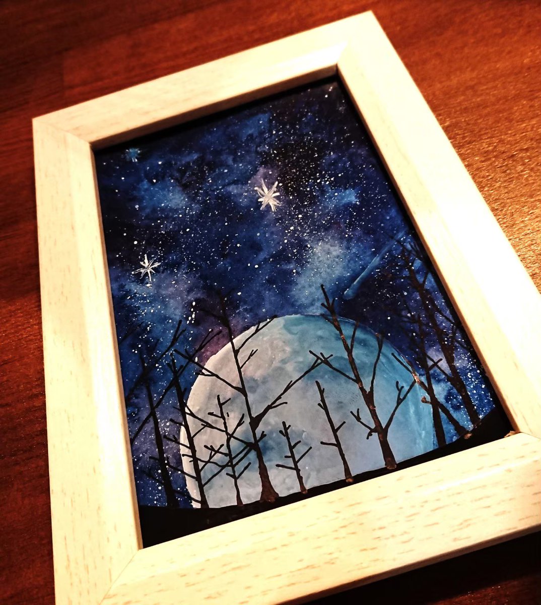 終夜朝を待つ。 月が舞い,星が踊り,朝が降りてくる。 一日の中で1番好きな時間は夜です。なんかワクワクしますね。 #絵描きさんと繋がりたい #水彩 #アナログ絵描きさんと繋がりたい #少しでもいいなと思ったらRT