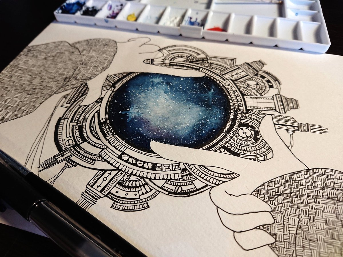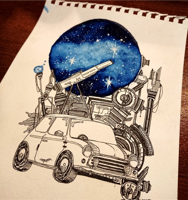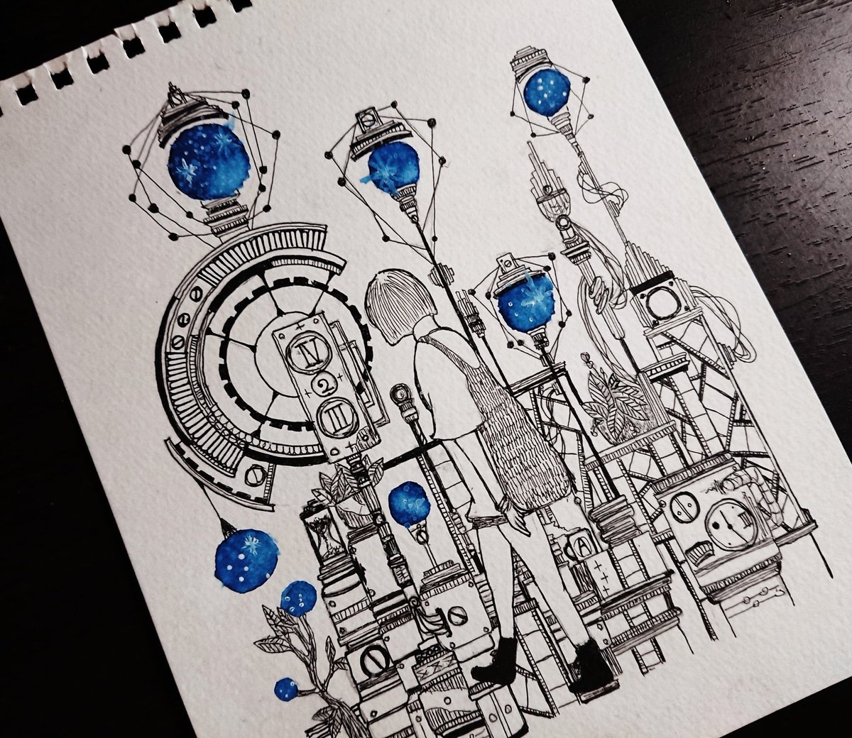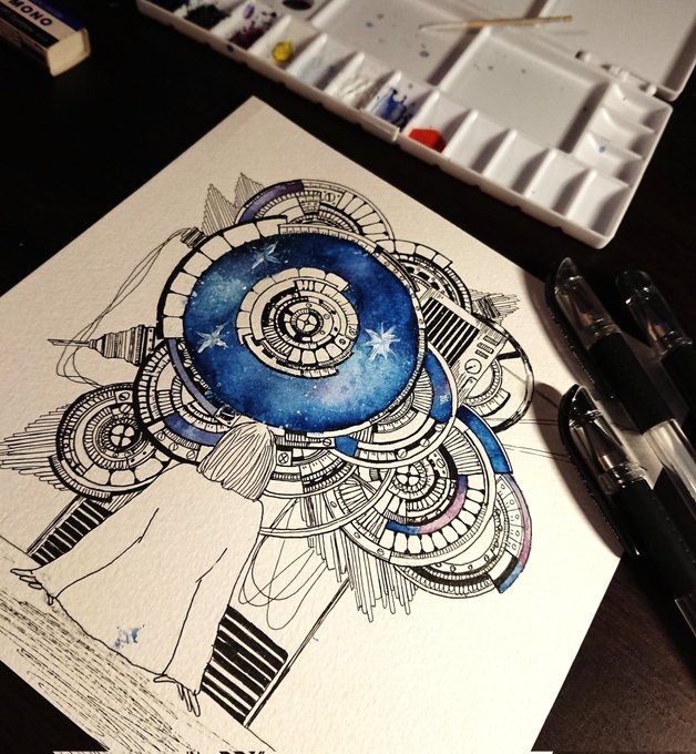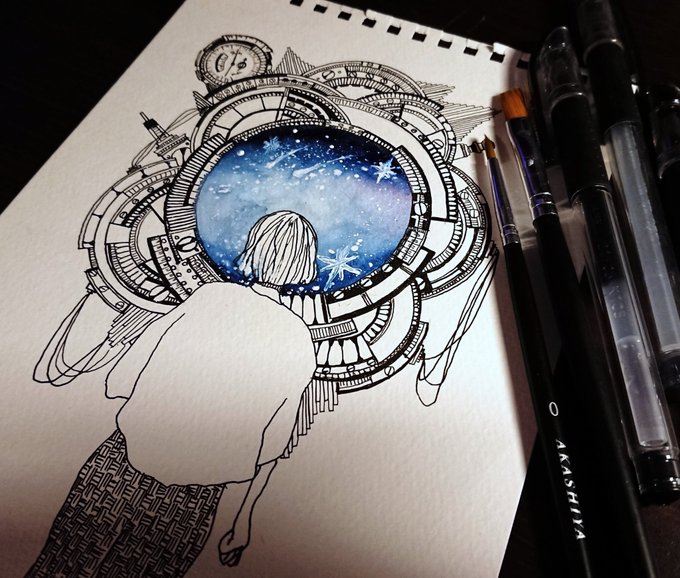 夢散歩 久しぶりに描いた絵が描き初めになりましたw 久しく忘れていた描く楽しさを思い出しました(´;ω;`) #絵描きさんと繫がたい #イラスト #アナログイラスト #少しでもいいなと思ったらRT