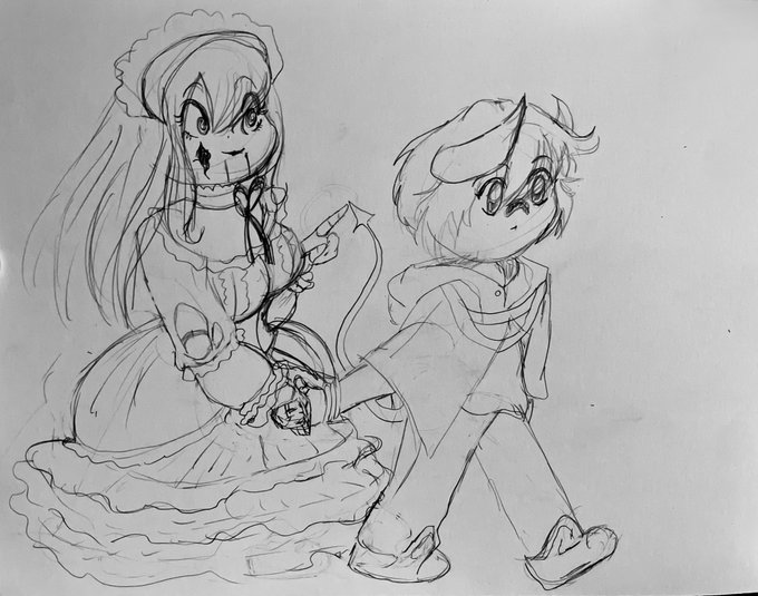 Another sketch. Sorry the weird angle as getting a scanner is part of my save up list for trying to put together a hobby digital art setup…. Anyway! I had to draw this scene from Weebcon. #Porcelainmade#ArtiSenz