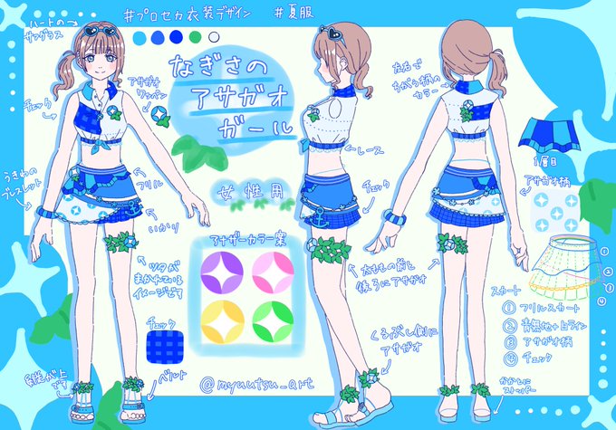 プロセカ衣装デザインに「なぎさのアサガオガール」で応募させて頂きます❕ 応援よろしくお願い致します。🙇♀️ #プロセカ衣装デザイン #夏服