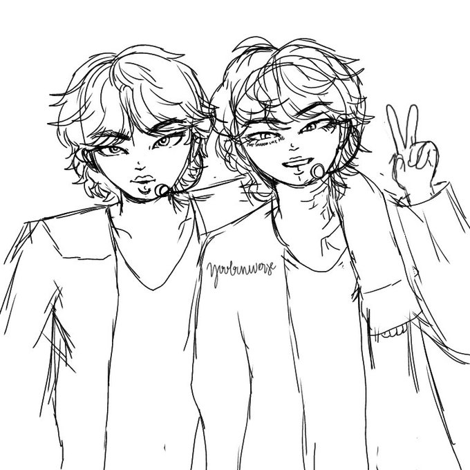 It has been a while like 3 months since I tried sketching straight on my phone. Trying out a new artstyle with #TaeJin 💜✨ #BTSFanArt #BTS
