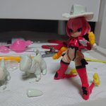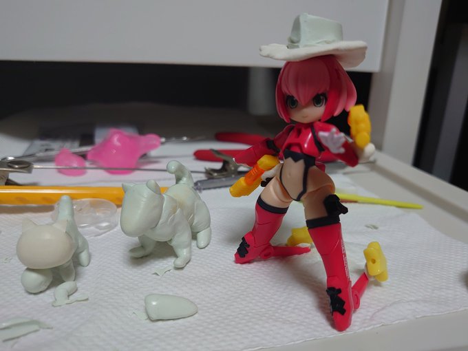 #デスクトップアーミー 改造を始めました。とりあえず仮の部品を練り消しで仮止めして全体像を確認。マフラーとゴーグルは布や透明レジンでツクるとして、背中にギターを背負わせたいので丁度良いのを探してみます。無ければ自作するしか無いかな。