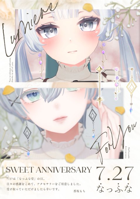 ◤ ̄ ̄ ̄ ̄ ̄ ̄ ̄ 🎉新作リリースの お知らせ🎉 _________◢ 7/27 なっふな堂の日に合わせて 日々の感謝の気持ちを込めて、無料のアクセサリーをご用意しました💛 nyahuuu.booth.pm/items/4960305 どのアバターにもお使い頂けるピアス3種類です~! ★デザイン3種類×カラー3種類… twitter.com/i/web/status/1…