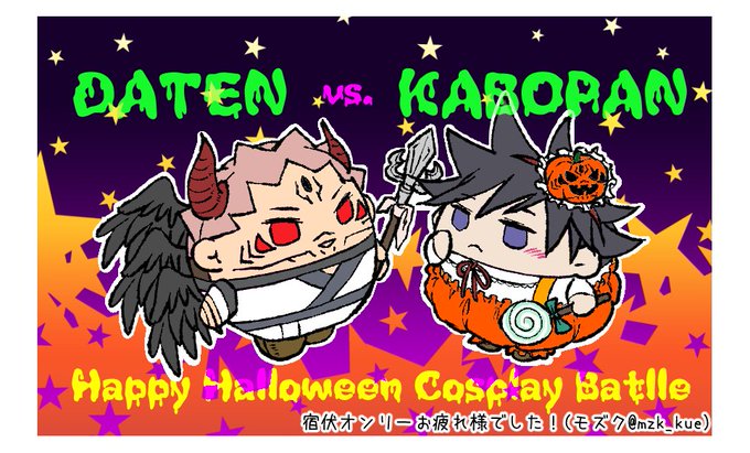 昨日、お菓子の袋に貼ってたシールです。堕天ネタでイジれるのは今しかないと思って…… 今更、気付きましたけど、また、帯の柄忘れてますね……。昨日頒布したわた本では、web版で描き忘れていた帯の柄を描き込んでいます😝