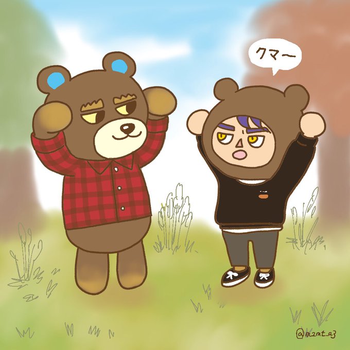 7 57 ずっと前にリクエストいただいてた、あつ🌳のクマさんとじゅうざくんを描きました!このムーというクマさん、じゅうざくんぽくて可愛いですね🐻 20/11/19 17:24
