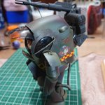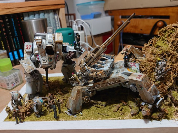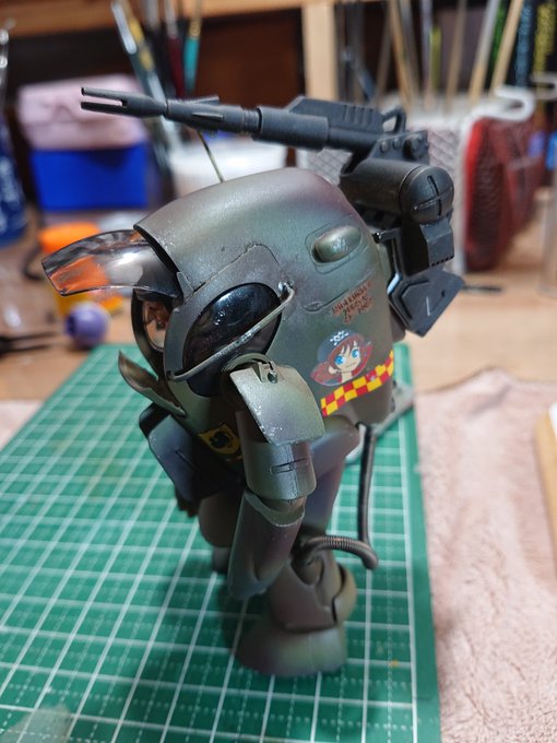 ふぅ~。 #北Q展示会 にもってく 2つ目の新作完成しました。 ヾ(≧∀≦*)ノ〃 NITTO版 1/20 P.K.A SpaceType フリーゲ (コクピットで丸まってるのはホネミッツプロダクツさんのインナーボディスーツ乙女Ⅱ) #マシーネンクリーガー #MaK #NITTO #ホネミッツプロダクツ