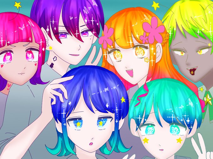 オリキャラたち💙🦋 #創作 #眠々星 #illustration #イラスト #絵描き