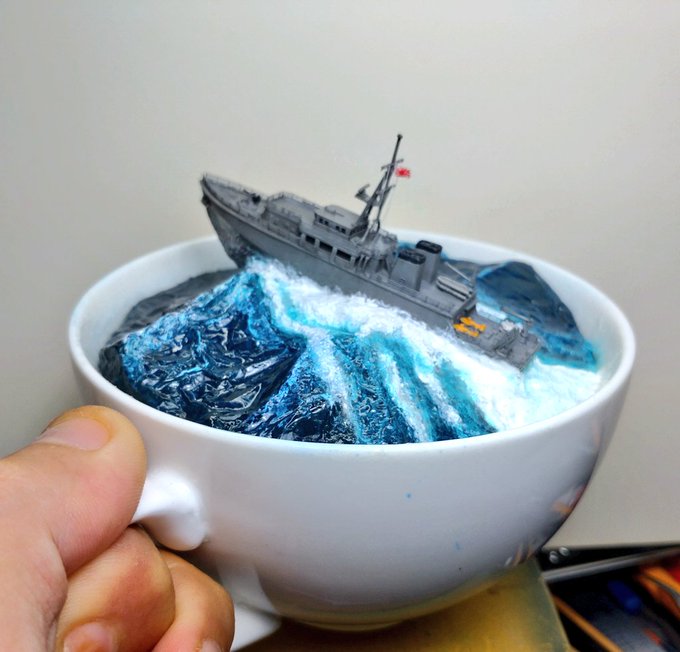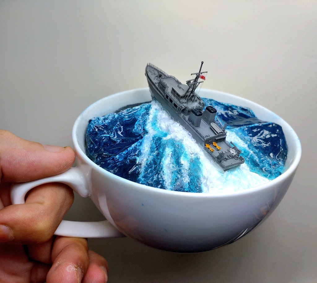 #7月になったのでフォロワーさんに自己紹介しようぜ アルミホイルで海ジオラマ作ってます 最近だとマグカップジオラマを量産してます 海洋生物や艦艇ですね 夢があって良いと思います 動画版は完成後の遊びでやってます よろしくお願いします twitter.com/i/web/status/1…