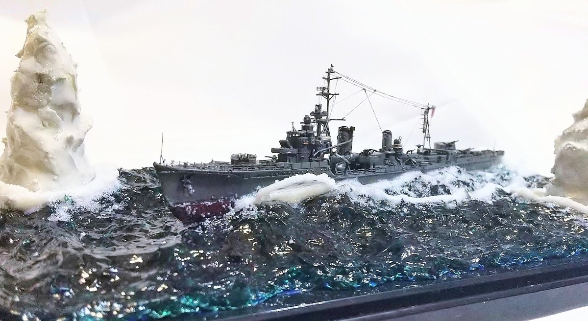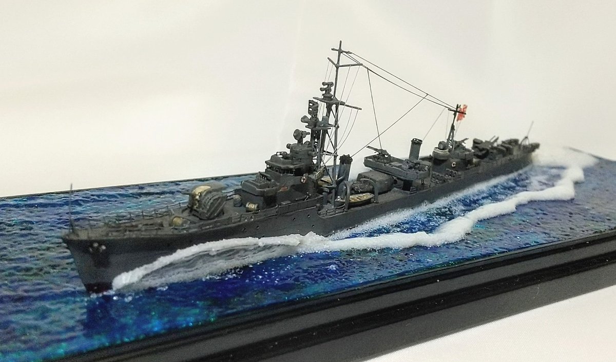 艦船編(ジオラマ) 航空駆逐艦「薄月」(ハセガワ1/700「三日月」改造) フジミ1/700 軽巡洋艦「矢矧」 ピットロード1/700 潜水艦「伊13」 護衛艦「やはぎ」(タミヤ1/700軽巡「矢矧」改造) 以上、艦船ものは7隻! #今年作ったプラモ晒そうぜ