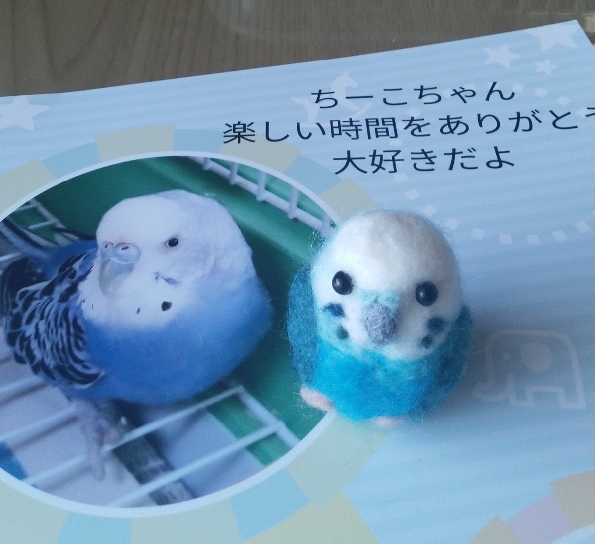 0 3 実家のインコちゃん(ちーこ)が虹の橋をわたりました。迷ってベランダに来たのを保護して12年。大好きでした。追悼に羊毛フェルトで人形作ってみました。幸せな時間ありがとう #セキセイインコ #虹の橋を渡りました #姿をしのんで #羊毛フェルト 22/08/06 19:32