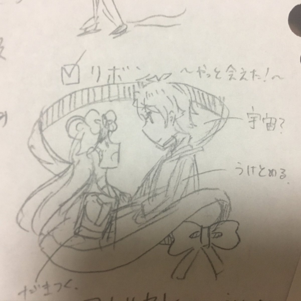 #このタグを見た人はラフ画とその完成絵を見せる 思いついたらルーズリーフにネタを書き続けるから大体こんな感じ描くときになんかしら忘れてたりする