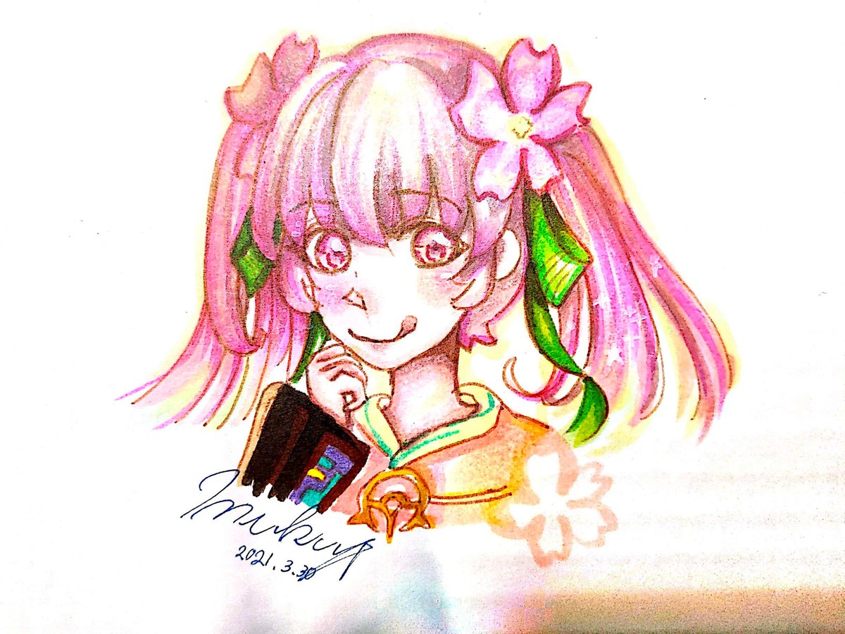 「桜ミク」 #イラスト #初音ミクイラスト #イラスト好きさんと繋がりたい #可愛い #アナログイラスト #コピック