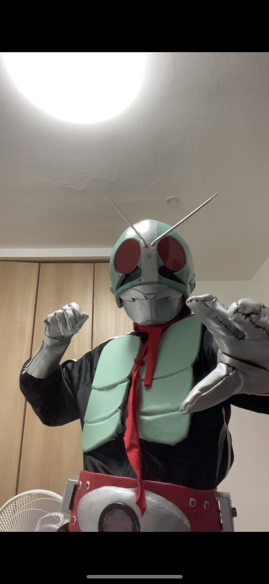 仮面ライダー新1号のコスプレ完成しました! 人生初のガワコスで分からないことだらけだったけどなんとか完成しました笑笑 #仮面ライダー #コスプレ #ガワコス