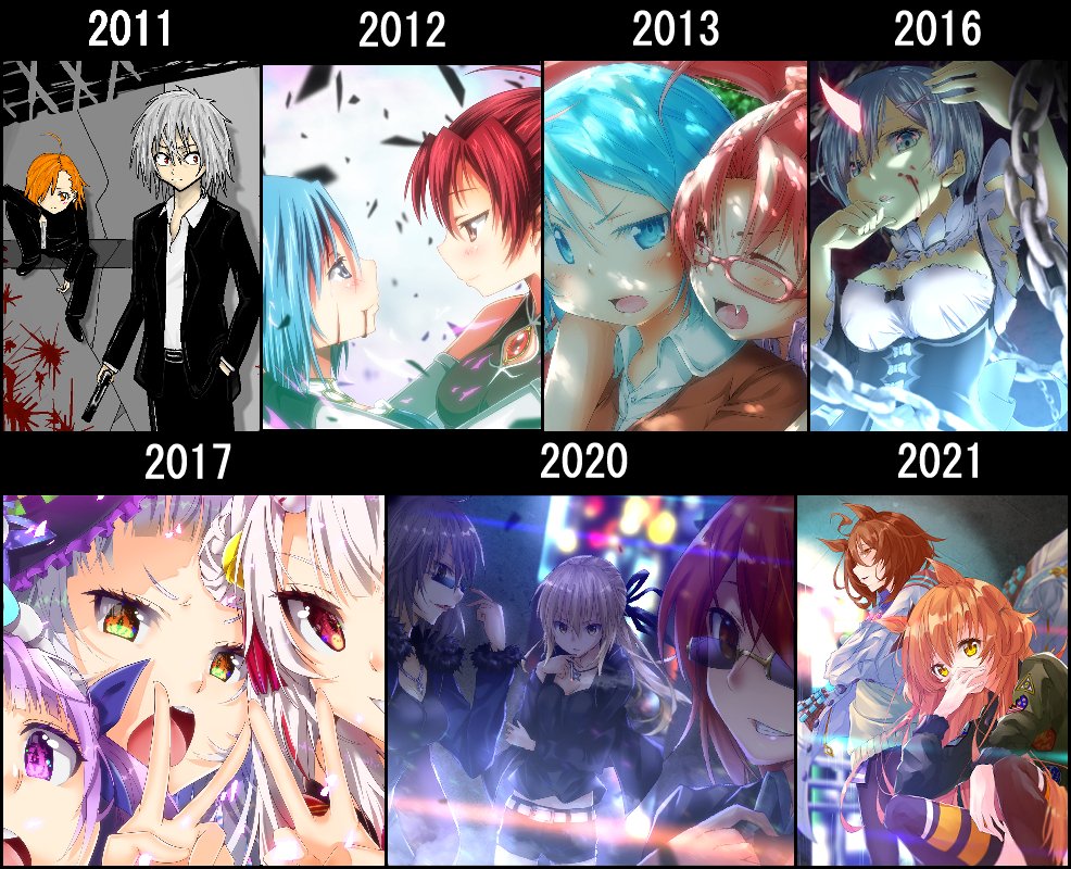2014・15・18・19年は、やる気なくてほぼ絵は描いてなかったです。こう並べると絵柄コロコロ変わってる笑 絵描きのやる気は皆様にかかっております!今後も絵師達を温かく応援してあげて下さい^^ #画力変化ビフォーアフター #独学でここまで成長したからお前も頑張れ