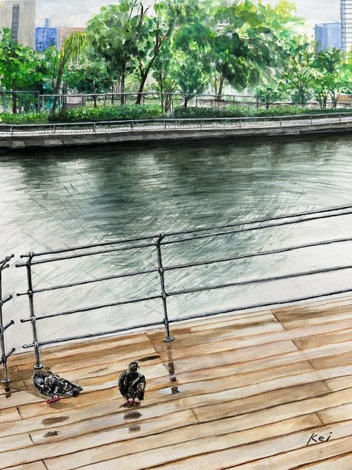 #何度だっていいあなたの最高傑作見せて 「都会のオアシス」 数年前に油絵を習っている時に描きました とても気に入ってたのですが、知人にあげてしまいました。(ちょっと後悔しています)🥲 #油絵 #風景画 #絵描きさんと繋がりたい